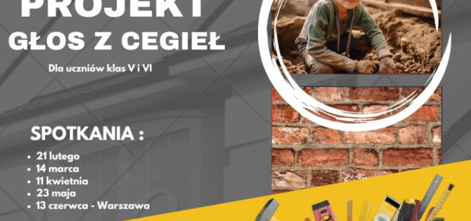 Zapraszamy uczniów klas 5 i 6 do projektu: „Głos z cegieł”! Chcesz odkryć tajemnice budynków, historii i sztuki ukrytej w murach naszego miasta? A może lubisz tworzyć, działać w grupie i poznawać nowe miejsca? Ten projekt jest dla Ciebie!