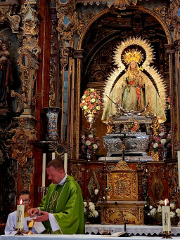 W czwartym dniu tj. 13.10 nasi pielgrzymi wybrali się do miasta RONDA, najpiękniejszego andaluzyjskiego miasta położonego na urwiskach skalistego wąwozu, do którego trasa wiodła przez zdumiewające pasmo Sierra Blanca. zwiedzanie miasta prowadziło przez liczne punkty widokowe na miasto i wąwóz, Nowy Most (Puento Nuevo) będący wybitnym przykładem XVIII wiecznej sztuki inżynierskiej, Plac Hiszpański, największą i najznakomitszą Arenę Walki Byków w całej Hiszpanii, urokliwy Plaza Duquesa de Parcent wraz z gotyckim kościołem Iglesia de Santa María la Mayor, Łaźnie Arabskie, zabytkowe kamienice w stylu andaluzyjskim i arabskim. Zwiedzanie zakończyło się Mszą św. w lokalnym sanktuarium Matki Bożej Pokoju, Patronki miasta RONDA. Później pielgrzymi intensywnie wykorzystali czas wolny.