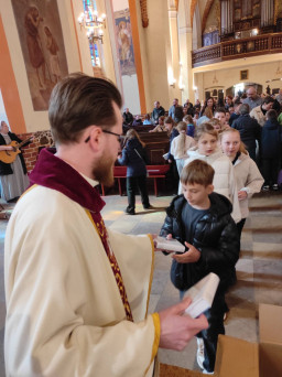 Niedziela, 19 kwietnia była szczególnym dniem dla naszych dzieci przygotowujących się do przyjęcia sakramentu Eucharystii podczas Pierwszej Komunii Świętej. Podczas uroczystej Mszy Świętej nasi najmłodsi otrzymali swoje pierwsze egzemplarze Pisma Świętego (Nowego Testamentu).