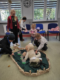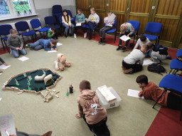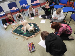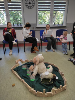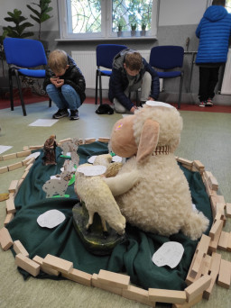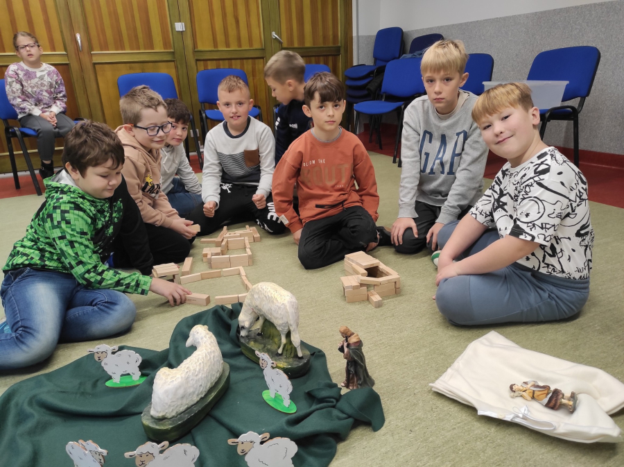 Gdy dzieci pod wodzą ks. Alexandra i s. Małgorzaty podczas parafialnej katechezy przygotowującej do przyjęcia I Komunii św. zdobywały wiedzę na temat Jezusa - Dobrego Pasterza, ich rodzice uczestniczyli w katechezie na temat katolickiego wychowania w rodzinie.