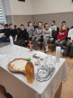 Katechezy „Wokół Stołu” – razem w drodze do pełnego udziału we Mszy Świętej. w sobotę, 24 stycznia w ramach programu Wokół Stołu odbywały się spotkania, przygotowujące rodziców i dzieci do pełnego uczestnictwa w Eucharystii, były one czasem głębokiej refleksji, wspólnego odkrywania wiary i radosnego zatrzymania się przy tajemnicy obecności Dobrego Pasterza.