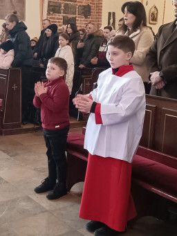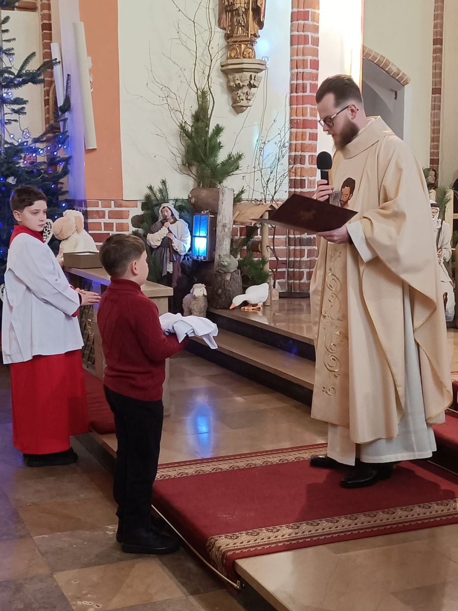 Podczas Mszy Świętej o godz. 11.00, sprawowanej w święto Świętej Rodziny, nasza wspólnota parafialna przeżywała radosne wydarzenie. Aleksander został uroczyście przyjęty do grona kandydatów na ministrantów i otrzymał komżę.