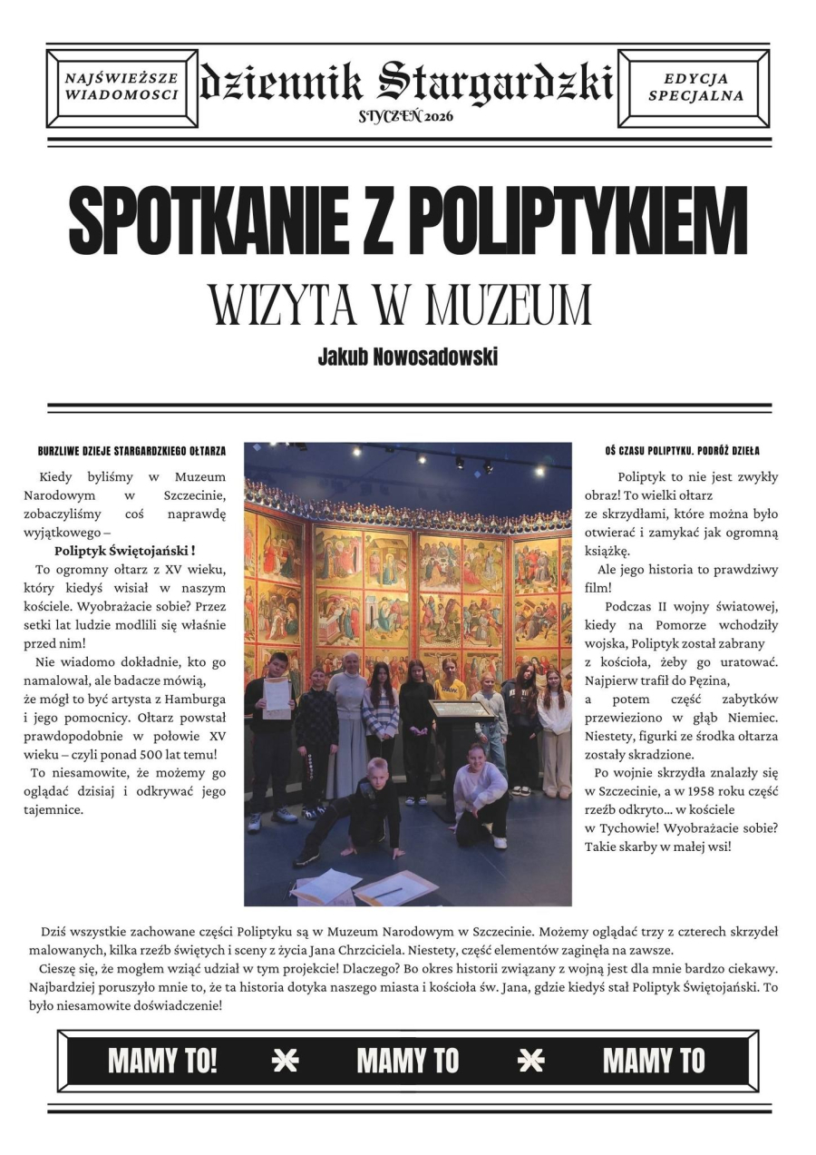Niedziela Słowa Bożego – młodzi znów w akcji! w niedzielę, 25 stycznia, młodzi realizujący projekt „Odkrywamy przeszłość, aby zrozumieć teraźniejszość – Poliptyk Świętojański” po raz drugi rozdawali parafianom artykuły przygotowane w ramach pracy nad tym wyjątkowym dziełem.