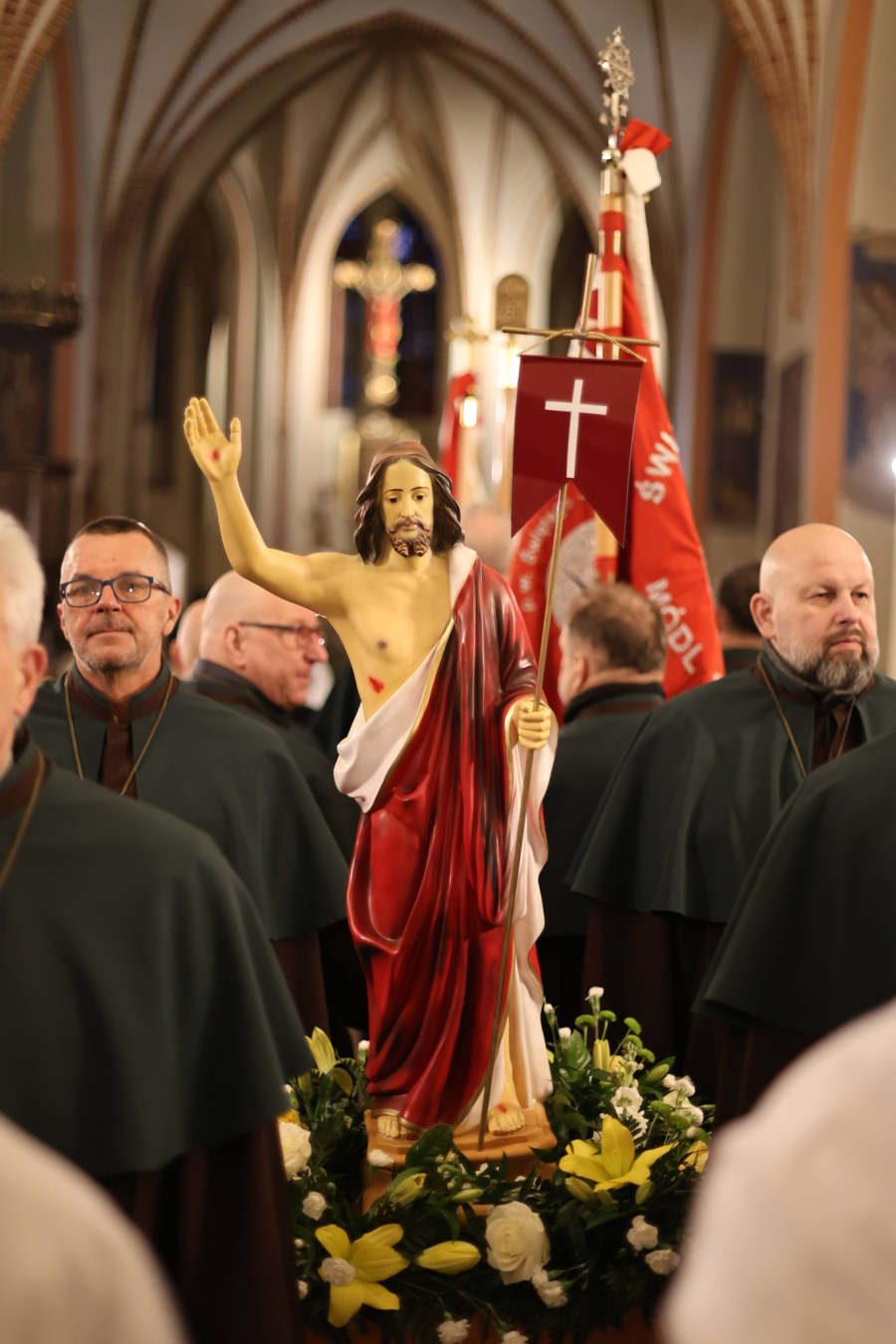 Chrystus Zmartwychwstał ! Procesją rezurekcyjną o godz. 6:00 rano rozpoczęliśmy świętowanie Zmartwychwstania Pańskiego. Po uroczystej procesji z Najświętszym Sakramentem, sprawowana była Msza Święta Rezurekcyjna.