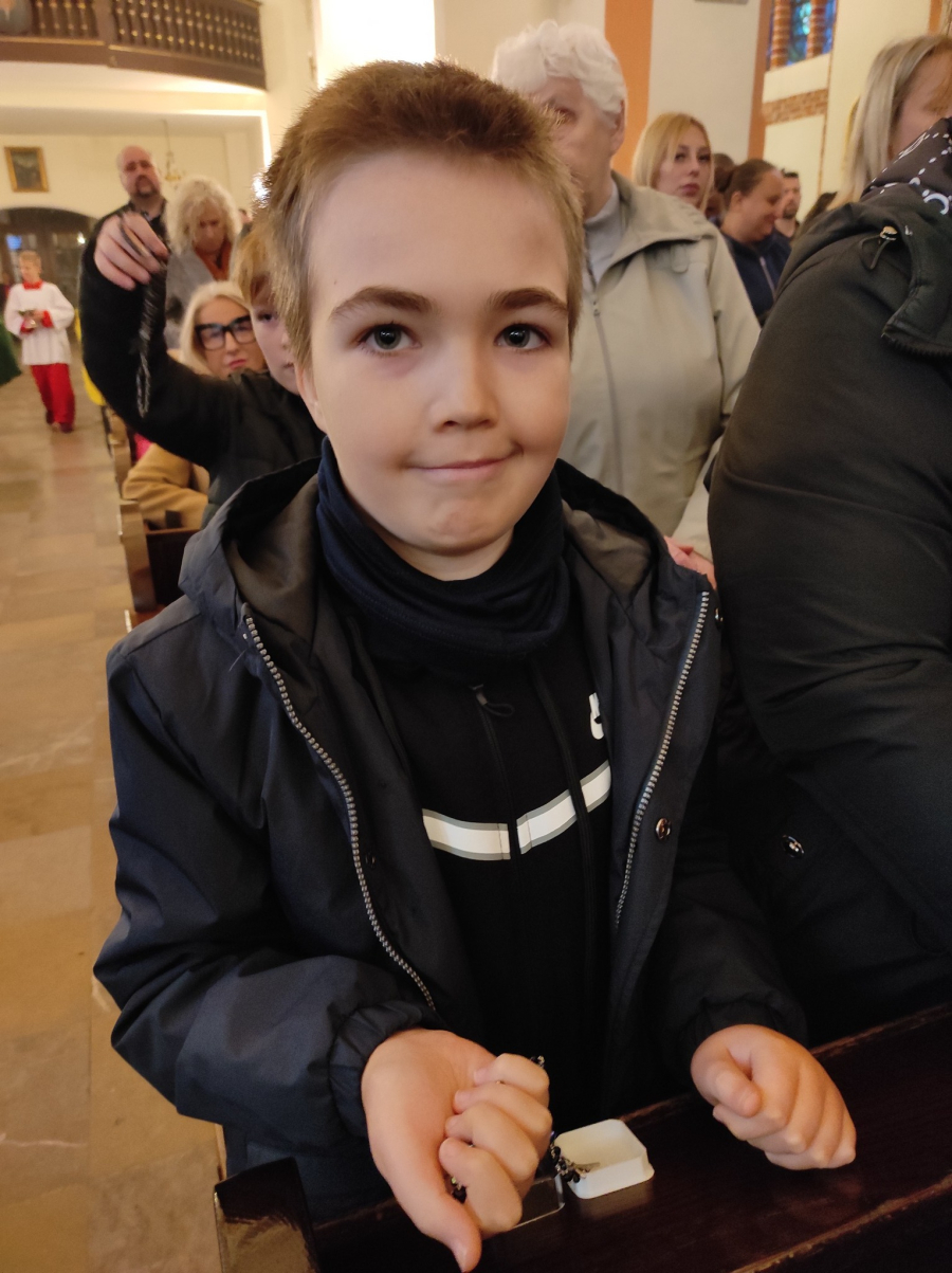 W niedzielę, 5 października nasze dzieci przygotowujące się do pełnego uczestnictwa w Eucharystii poprosiły ks. Proboszcza o poświęcenie pierwszego swojego różańca.