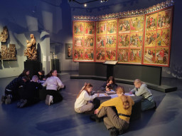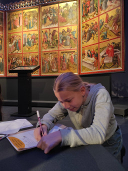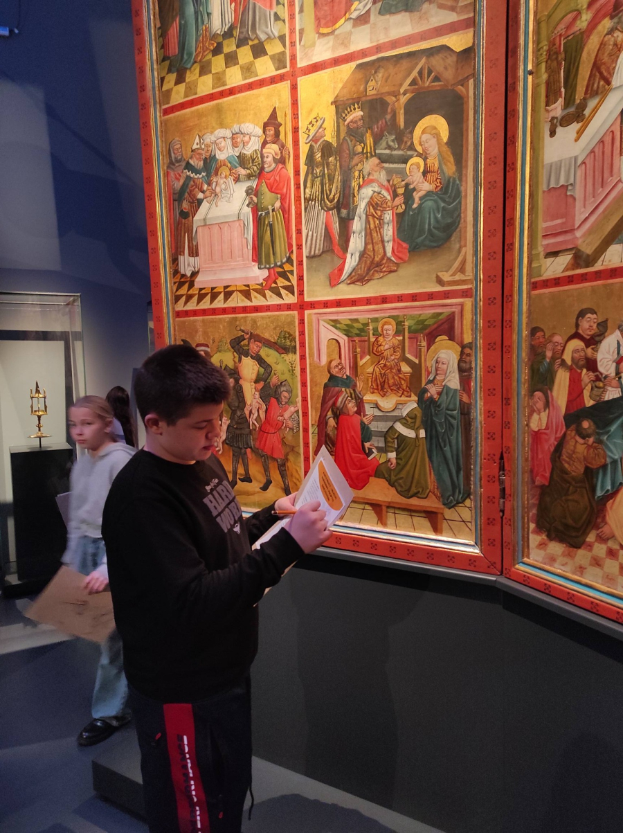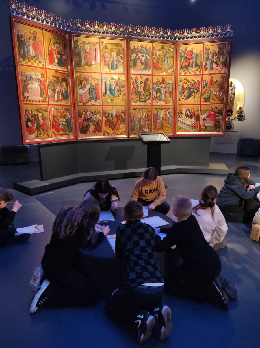 Dzieci pracowały z przygotowaną kartą pracy, analizując szczegóły poliptyku, odkrywając jego znaczenie i ucząc się, jak sztuka opowiada o wierze i kulturze dawnych wieków. Było dużo pytań, ciekawych spostrzeżeń i radości z odkrywania!