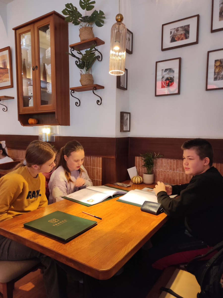 Po zwiedzaniu przyszedł czas na integrację przy pizzy – rozmowy, śmiech i dzielenie się wrażeniami z muzealnej przygody. To był naprawdę udany dzień!