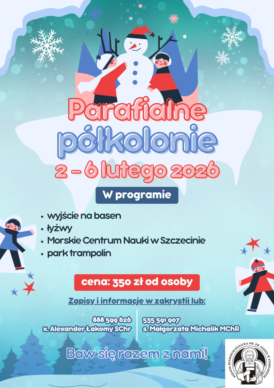 Parafia Rzymskokatolicka pw. św. Józefa w Stargardzie organizuje zimowe półkolonie dla dzieci z klas 1–4 szkoły podstawowej.