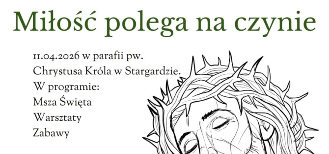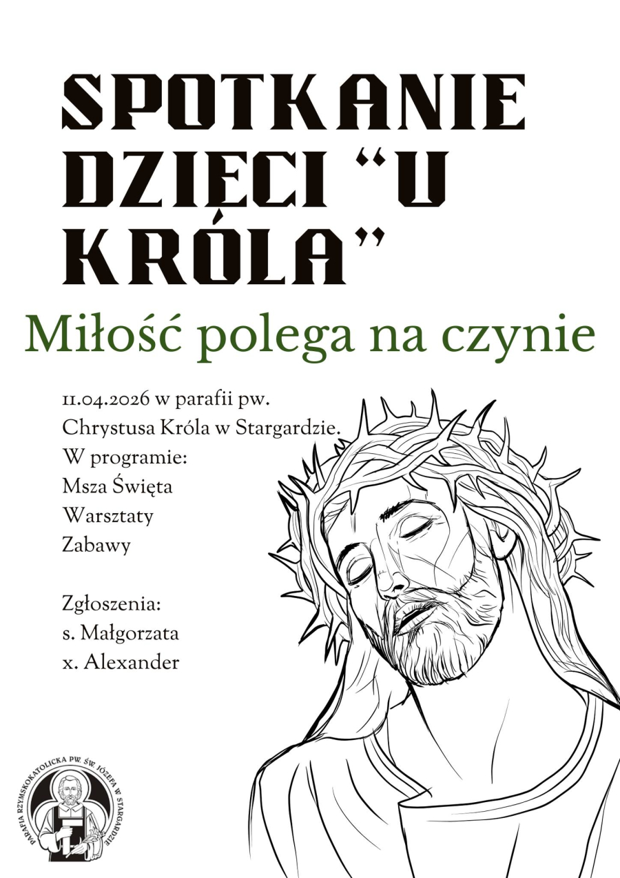 Dzieci naszej parafii zapraszamy na coroczne „Spotkanie u Króla”. Odbędzie się ono w parafii pw. Chrystusa Króla w Stargardzie w sobotę 11 kwietnia. Chętnych prosimy o zgłoszenia do s. Małgorzaty lub x. Alexandra do końca marca.