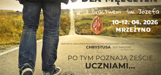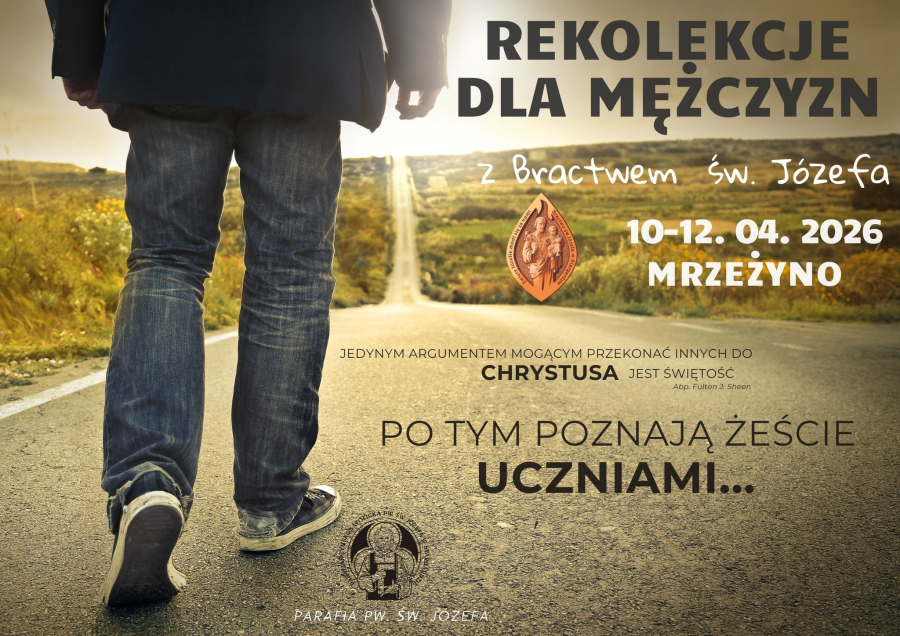 W dniach 10-12 kwietnia w domu rekolekcyjnym w Mrzeżynie odbędą się REKOLEKCJE DLA MĘŻCZYZN Z BRACTWEM ŚW. JÓZEFA [otwarte dla wszystkich chętnych mężczyzn].