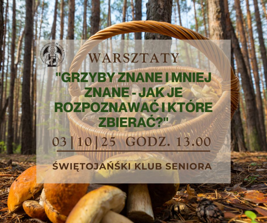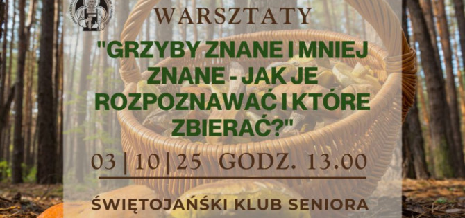 ŚWIĘTOJAŃSKI KLUB SENIORA zaprasza Seniorów w piątek, 03.10 o godz. 13.00 na Warsztaty prowadzone przez przedstawicieli SANEPIDU pod hasłem: "Grzyby znane i mniej znane - jak je rozpoznawać i które zbierać?"