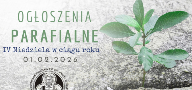 10. Informujemy, że PARAFIALNE REKOLEKCJE WIELKOPOSTNE przeżywać będziemy od Środy Popielcowej 18. 02. do soboty 21. 02. 2026 z hasłem: „Krzyżu święty, Krzyżu codzienny”. Poprowadzi je pallotyn, ks. Bartosz Olszewski SAC - Dyrektor Pallotyńskiego Centrum Młodzieży „Apostoł”. Program jest dostępny na stronie parafii. Już dzisiaj zachęcamy do zaplanowania udziału w rekolekcjach.